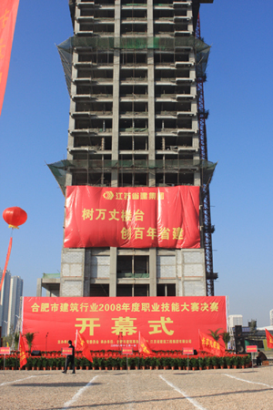 12月1日(rì)上午,江蘇省建集團人(rén)行合肥支行項目現場豔陽高照(zhào),彩旗飄揚,由安徽省合肥市建委主辦、江蘇省建集團承辦的合肥市建築行業2008年(nián)度職業技能大(dà)賽決賽在合肥市濱湖新區江蘇省建集團人(rén)行合肥支行項目工(gōng)地拉開帷幕。來(lái)自(zì)合肥市肥東、肥西、長風(fēng)、市屬、安徽省屬及進肥企業6支代表隊共百餘名選手參加了決賽。江蘇省建集團共有12名技術(shù)能手進入決賽。
