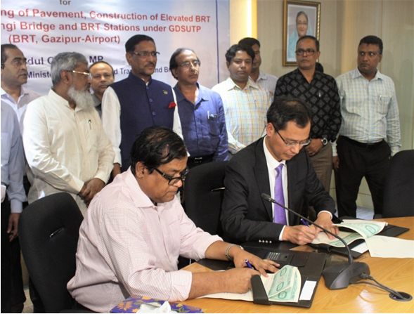 日(rì)前,孟加拉達卡齊亞國(guó)際機(jī)場—蓋資浦BRT項目2标施工(gōng)合同簽字儀式在位于孟加拉首都(dōu)達卡的孟加拉大(dà)橋局(BBA)正式召開。江蘇交工(gōng)董事(shì)長張曉宇與孟加拉大(dà)橋局總工(gōng)程師(shī)迦比爾·艾哈邁德共同簽署了施工(gōng)合同協議(yì)書(shū)。孟加拉公路(lù)交通和橋梁部部長奧巴杜爾·卡德爾、大(dà)橋局秘書(shū)漢德克·安沃魯爾·伊斯蘭等見(jiàn)證了整個簽約過程。