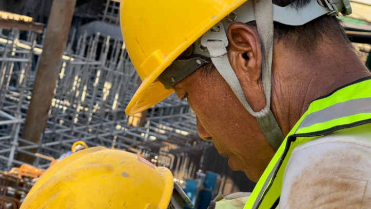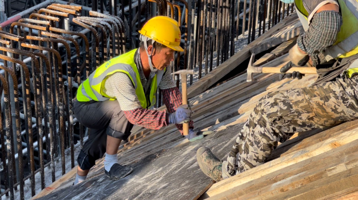 楊慶祥戴着護袖和手套,“這是防止燙傷,戴着手套摸鋼筋都(dōu)燙手。”“我是木工(gōng),就(jiù)是給隧道頂闆做模架。把模架搭好後,再置入鋼筋進行綁紮,最後澆築混凝土(tǔ),這個頂闆才算成。”他(tā)擡起頭跟記者解釋着,黝黑(hēi)的臉上,汗水被照(zhào)得(de)晶瑩透亮,不斷地順着下巴滴在木頭上。
