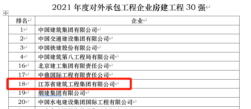█位列對外承包企業房(fáng)建工(gōng)程30強第18名