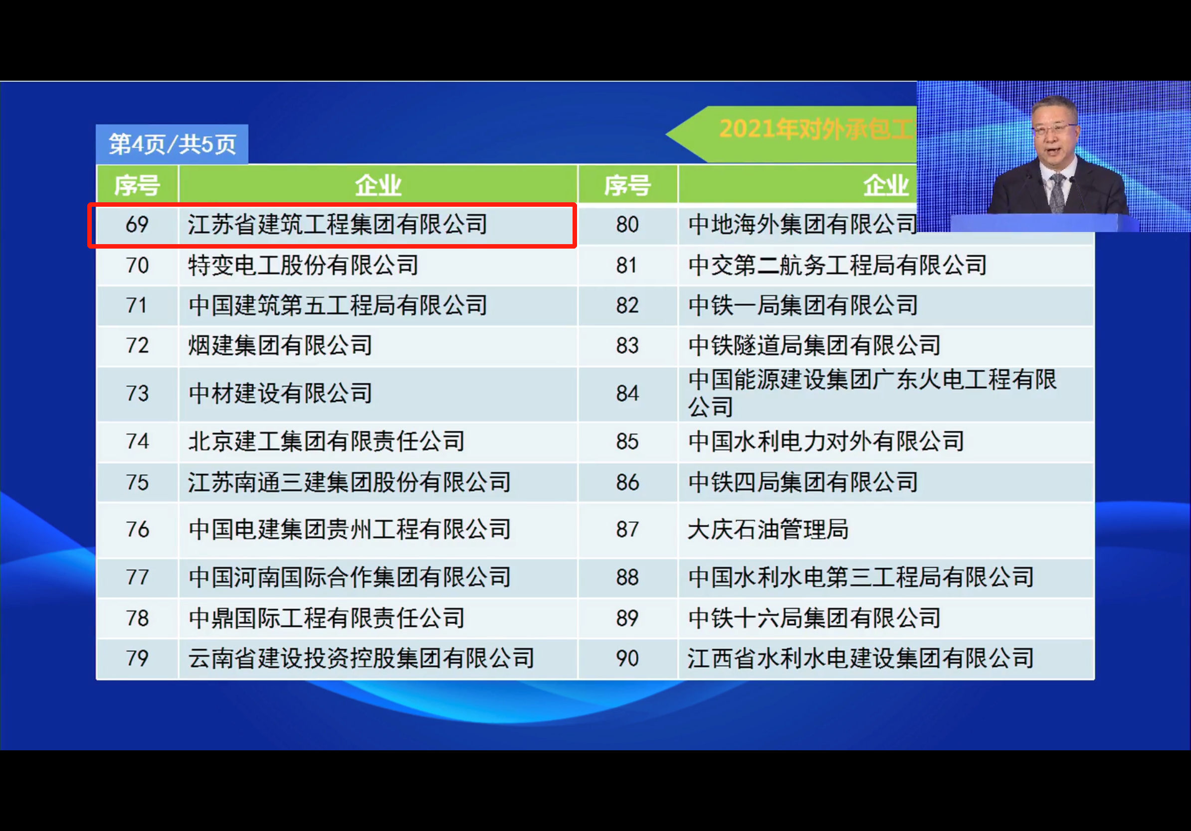 █位列對外承包工(gōng)程企業100強第69名