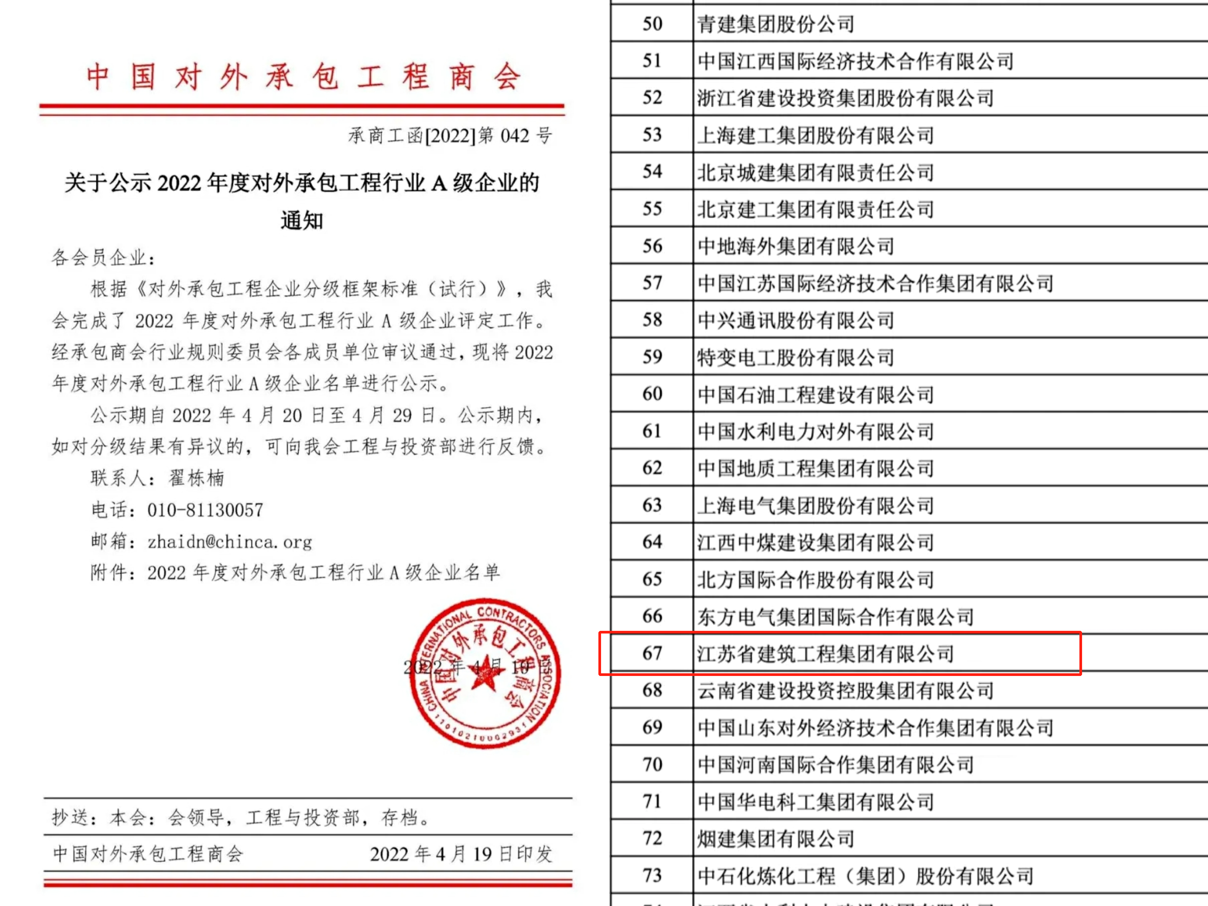 █入選年(nián)度對外承包工(gōng)程行業A級企業