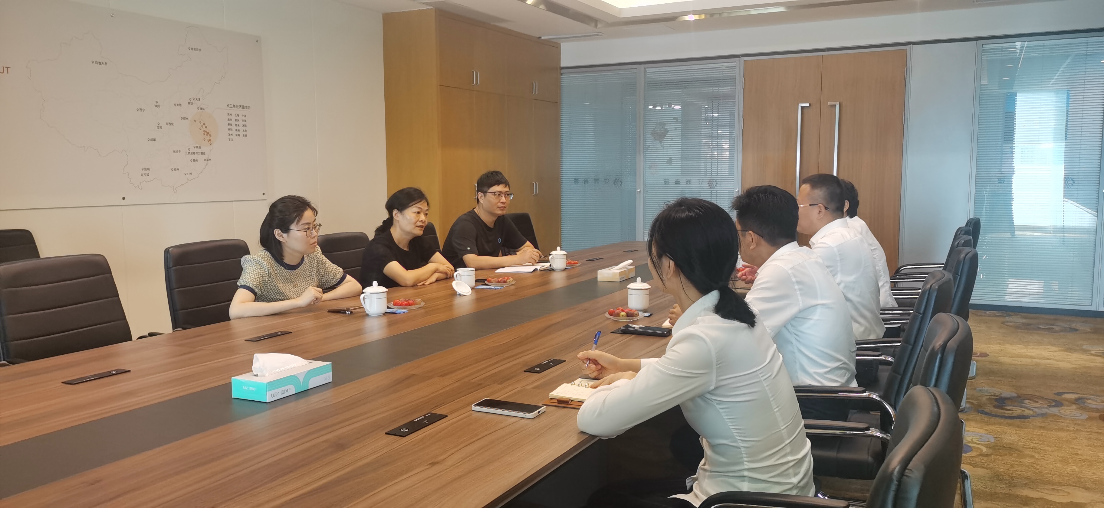 7月8日(rì),蘇州高鐵新城(chéng)黨工(gōng)委委員(yuán)、管委會副主任金愛民(mín),規劃建設局副局長範玉明一行赴第二工(gōng)程公司開展專題調研工(gōng)作(zuò),集團副總裁、第二工(gōng)程公司董事(shì)長熱(rè)情接待了來(lái)訪領導。