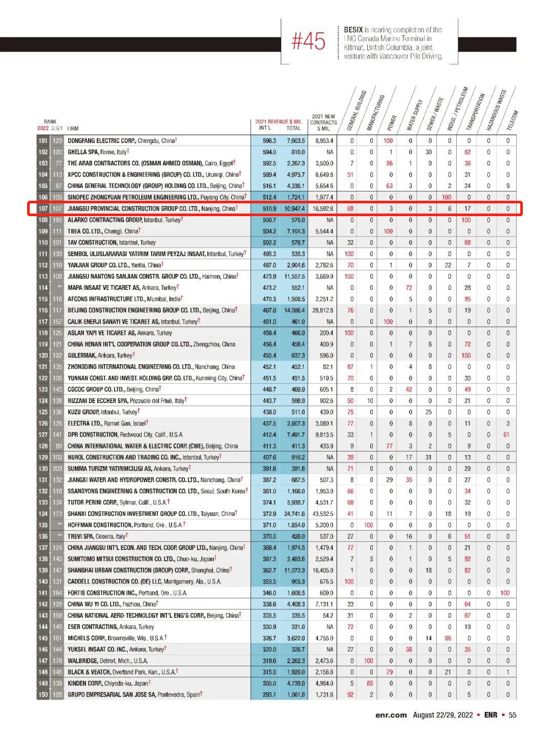 2022年(nián)度ENR國(guó)際承包商250強公布
