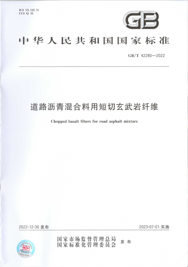 近日(rì),由東南(nán)大(dà)學、江蘇省建集團、江蘇綠材谷新材料科(kē)技發展有限公司、江蘇省交通工(gōng)程集團、同力建設集團等單位聯合主編的《GB/T42280-2022道路(lù)瀝青混合料用短(duǎn)切玄武岩纖維》國(guó)家标準發布,并将于2023年(nián)7月1日(rì)起正式實施。