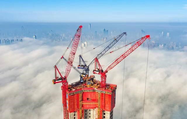 “空中造樓機(jī)”全稱爲“超高層建築智能化施工(gōng)裝備集成平台”,在全球首次将大(dà)型塔機(jī)和安全防護、臨時消防、臨時堆場等施工(gōng)設備、設施直接集成于施工(gōng)平台上,共用支點,同步頂升,猶如(rú)一個設在空中的建築工(gōng)廠(chǎng),可(kě)覆蓋4層半高度,承載力達數千噸,能抵抗14級飓風(fēng)。随着“造樓機(jī)”的爬升,各項工(gōng)藝逐層進行,從(cóng)下到上形成工(gōng)廠(chǎng)流水線,逐層完成鋼筋綁紮、模闆支設、混凝土(tǔ)澆築、混凝土(tǔ)養護等工(gōng)作(zuò),讓百米高空的建築施工(gōng)作(zuò)業如(rú)履平地,實現三天一個結構層的施工(gōng)速度,極大(dà)提升了建築施工(gōng)的标準化、集成化、智能化水平。